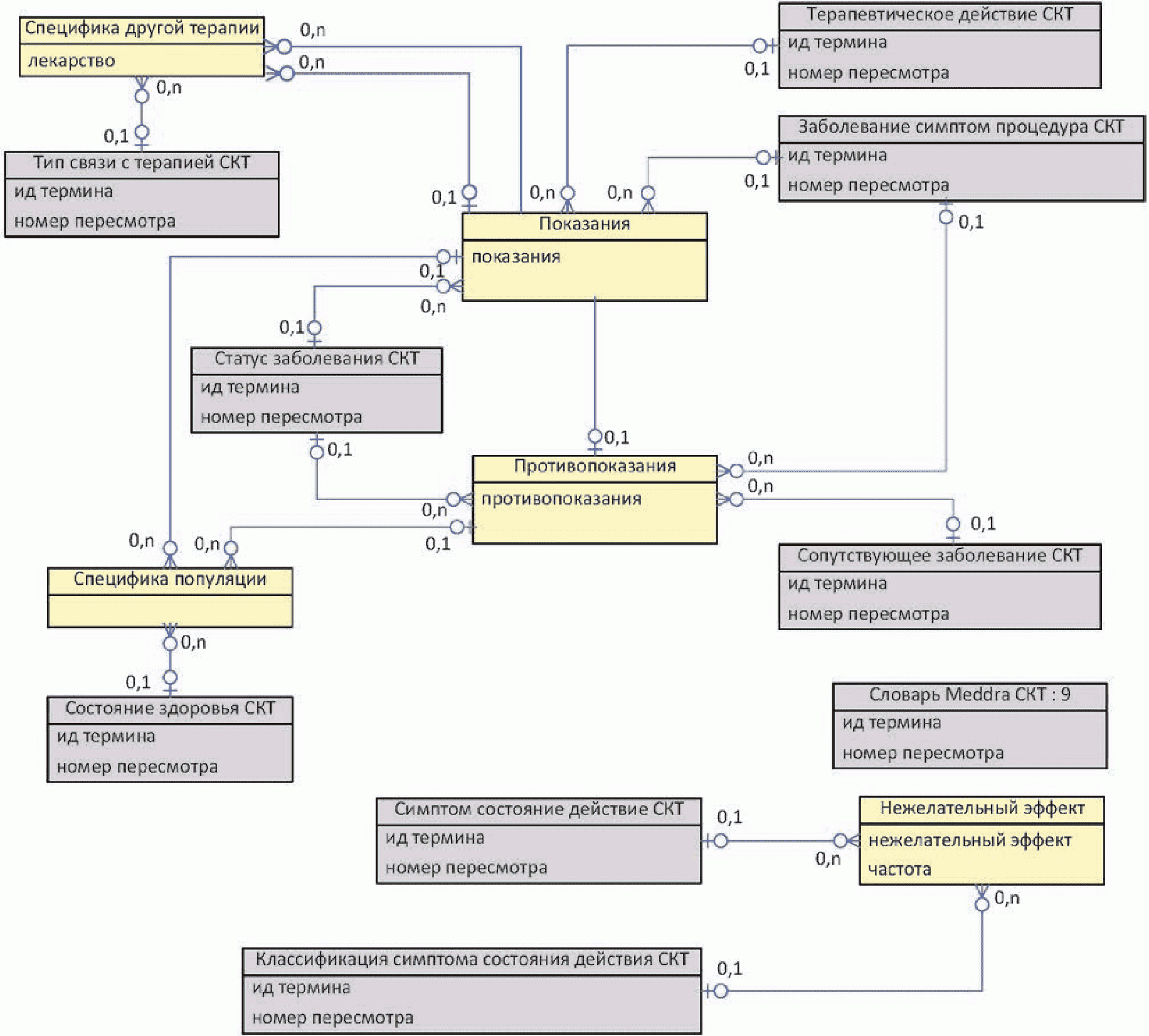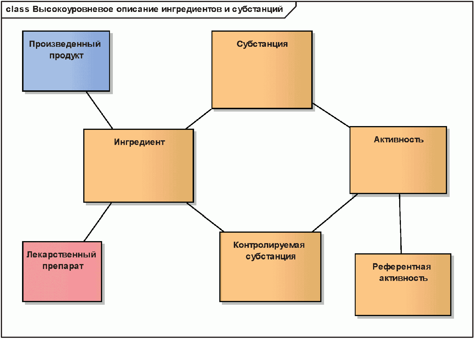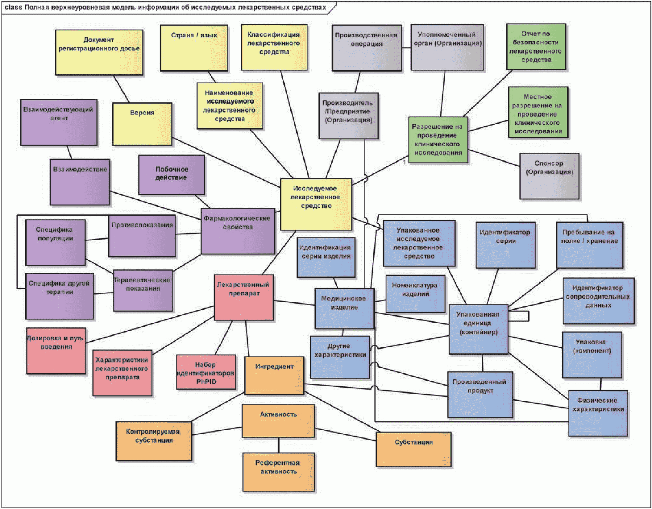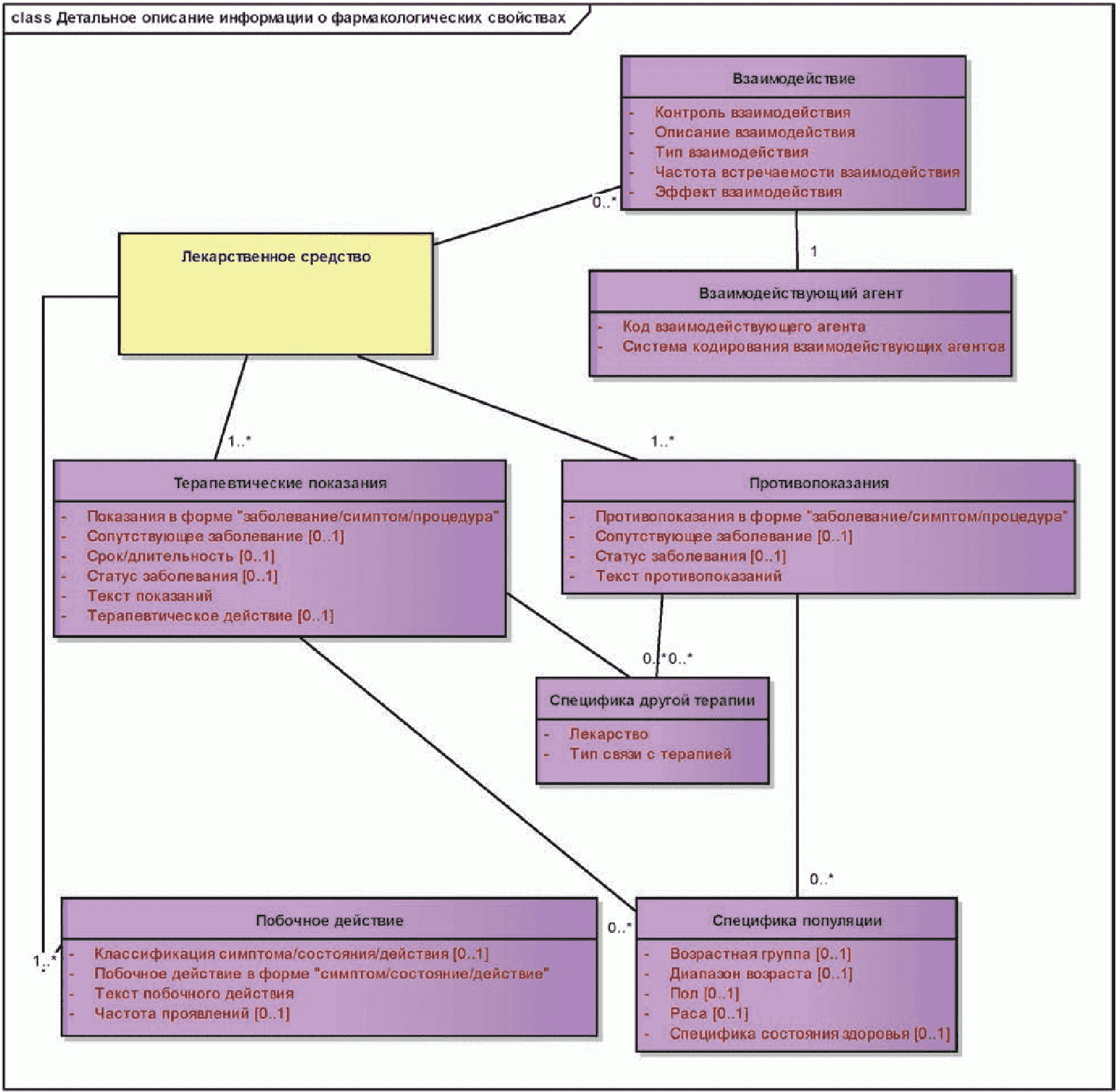 На приведенной ниже диаграмме показаны сущности описания целевой популяции зарегистрированного лекарственного средства, а также его фармакологических свойств.