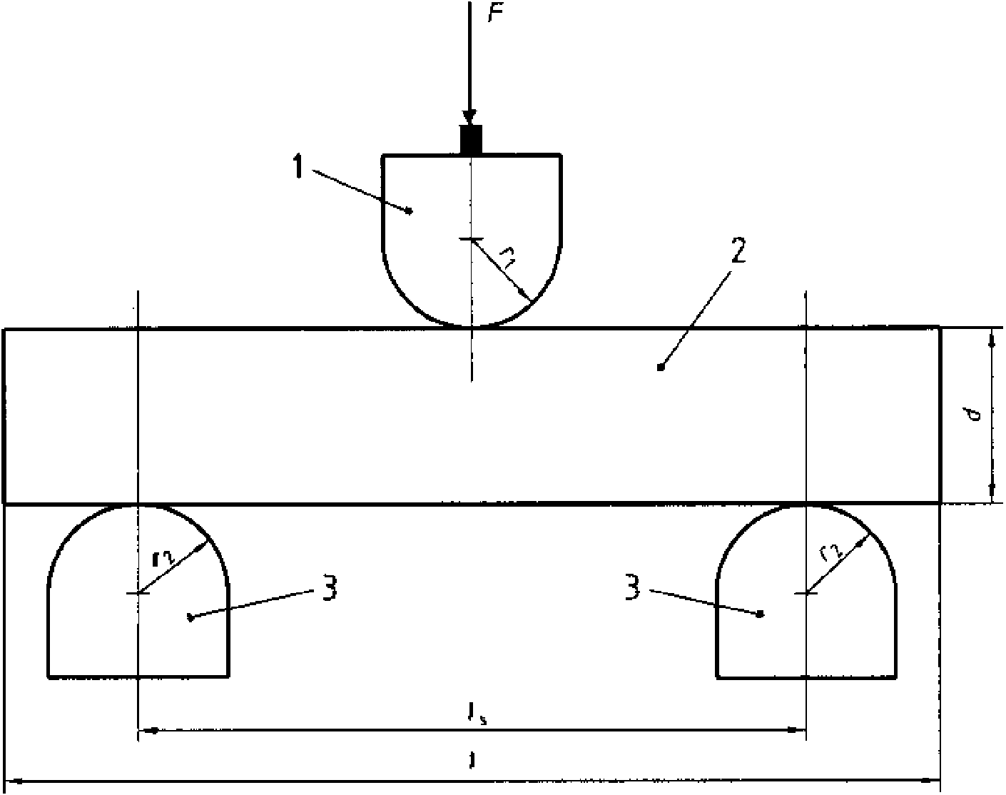 Прочность на изгиб/сдвиг измеряют трехточечным методом. Образец помещают на две опоры и прикладывают силу к середине образца до его разрушения.