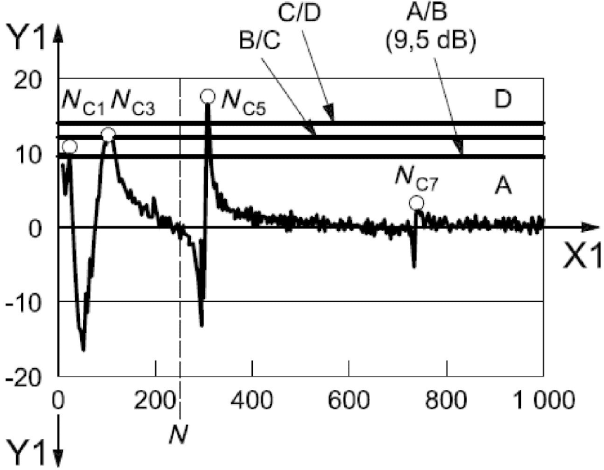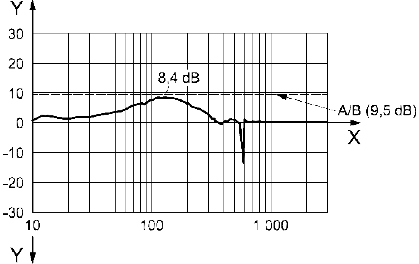 рисунок B.3). Поскольку наивысшему пику функции чувствительности соответствует значение 3,9 дБ (или 1,6 в абсолютных единицах), можно сделать вывод, что компрессор попадает в зону A (см.