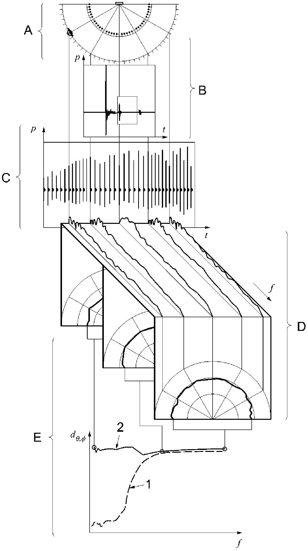 Коэффициент рассеяния, как и отраженная от поверхности звуковая энергия, является пространственно распределенной величиной. Это пространственное распределение описывают уровнем звукового давления отраженного звука в полярных координатах. Для измерения уровней звука используют микрофоны, расположенные в радиальных направлениях от испытуемой поверхности, и источник звука для ее облучения. Звуковой сигнал, принятый микрофонами, используют для последующей обработки по методике, изложенной в