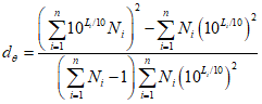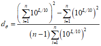 Для фиксированного положения источника в каждой третьоктавной полосе направленный коэффициент рассеяния может быть вычислен по множеству уровней звукового давления Li, дБ, от n микрофонов при помощи формулы