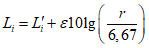 Приведенные к стандартным расстояниям r1 = 10 м и r2 = 5 м корректированные измеренные в точке с номером i уровни определяют по формуле