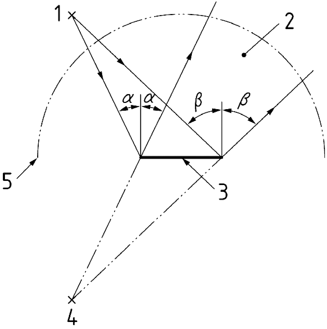 4 - мнимый источник, 5 - приемная дуга