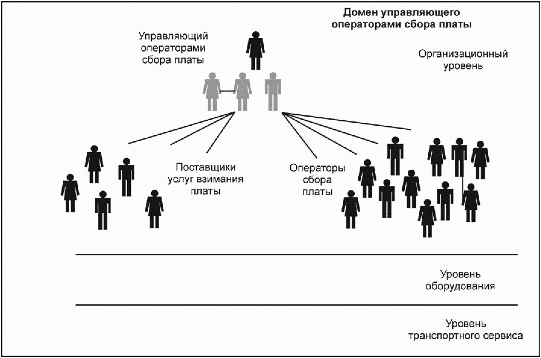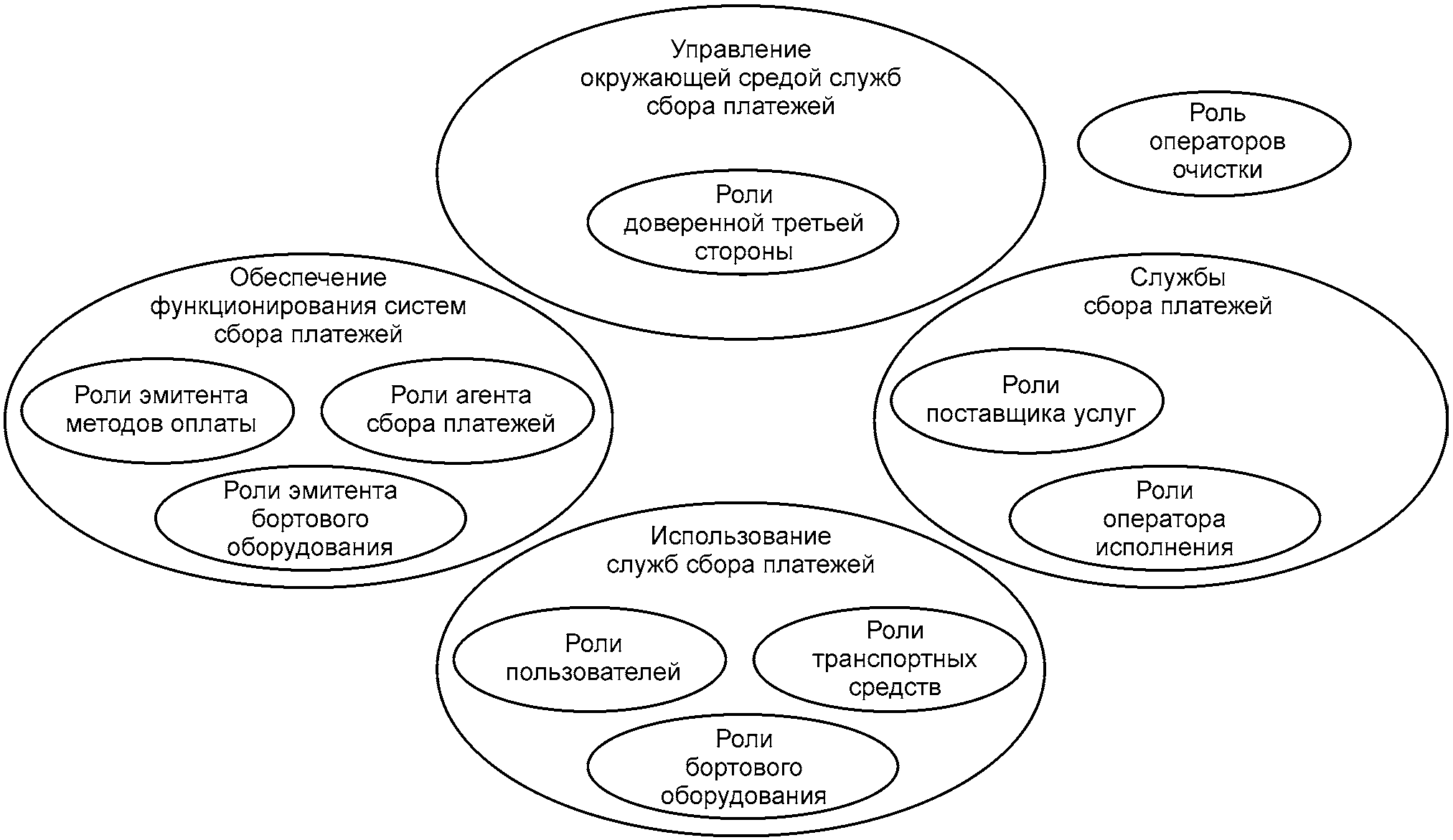 Обеспечение функционирования систем сбора платежей охватывает роли, распределенные по классам "роли эмитента бортового оборудования" и "роли эмитента методов оплаты" в диаграмме классов UML.