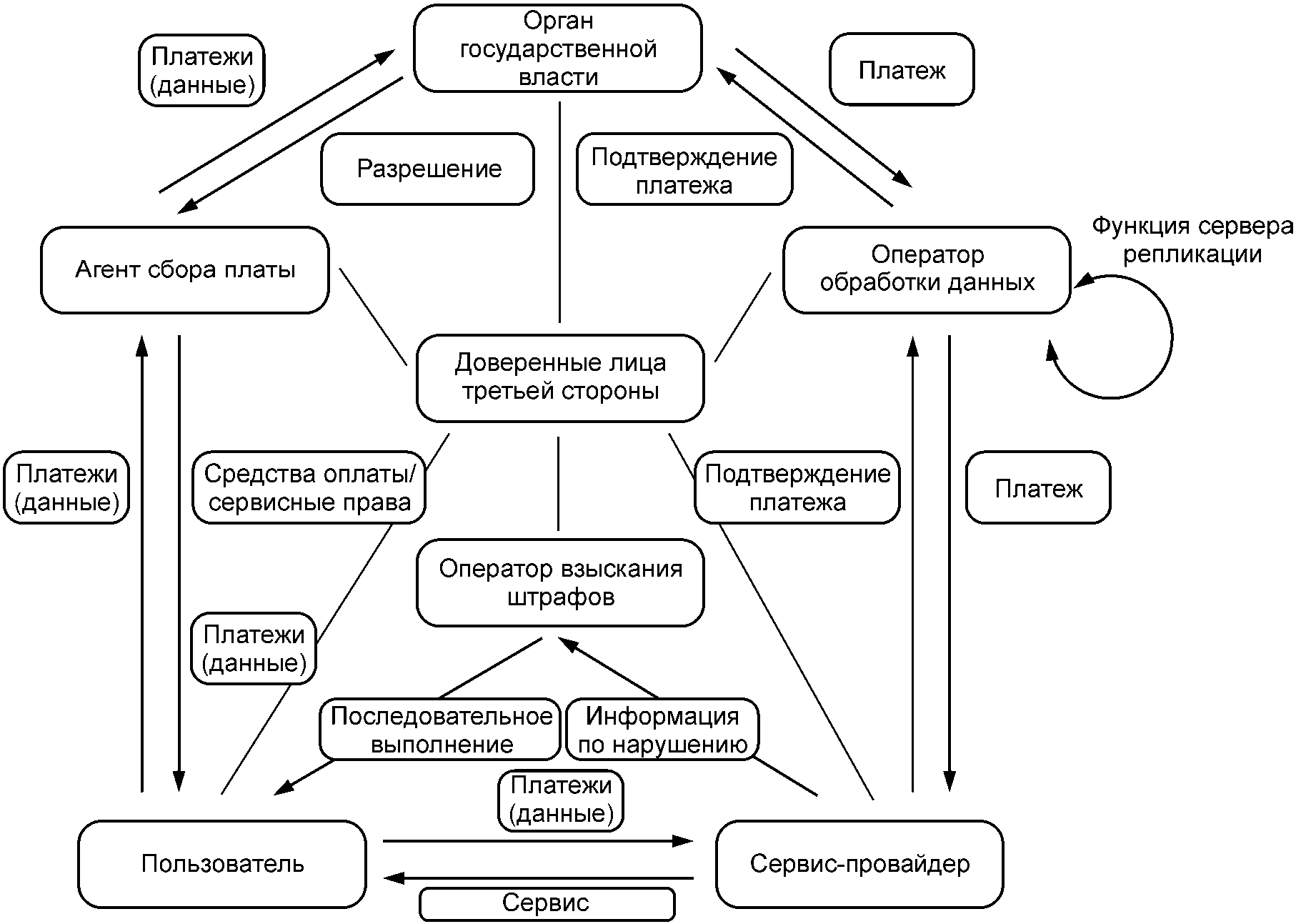 Управление окружающей средой служб сбора платежей охватывает роли, распределенные по классу "роли доверенной третьей стороны" в диаграмме классов UML.