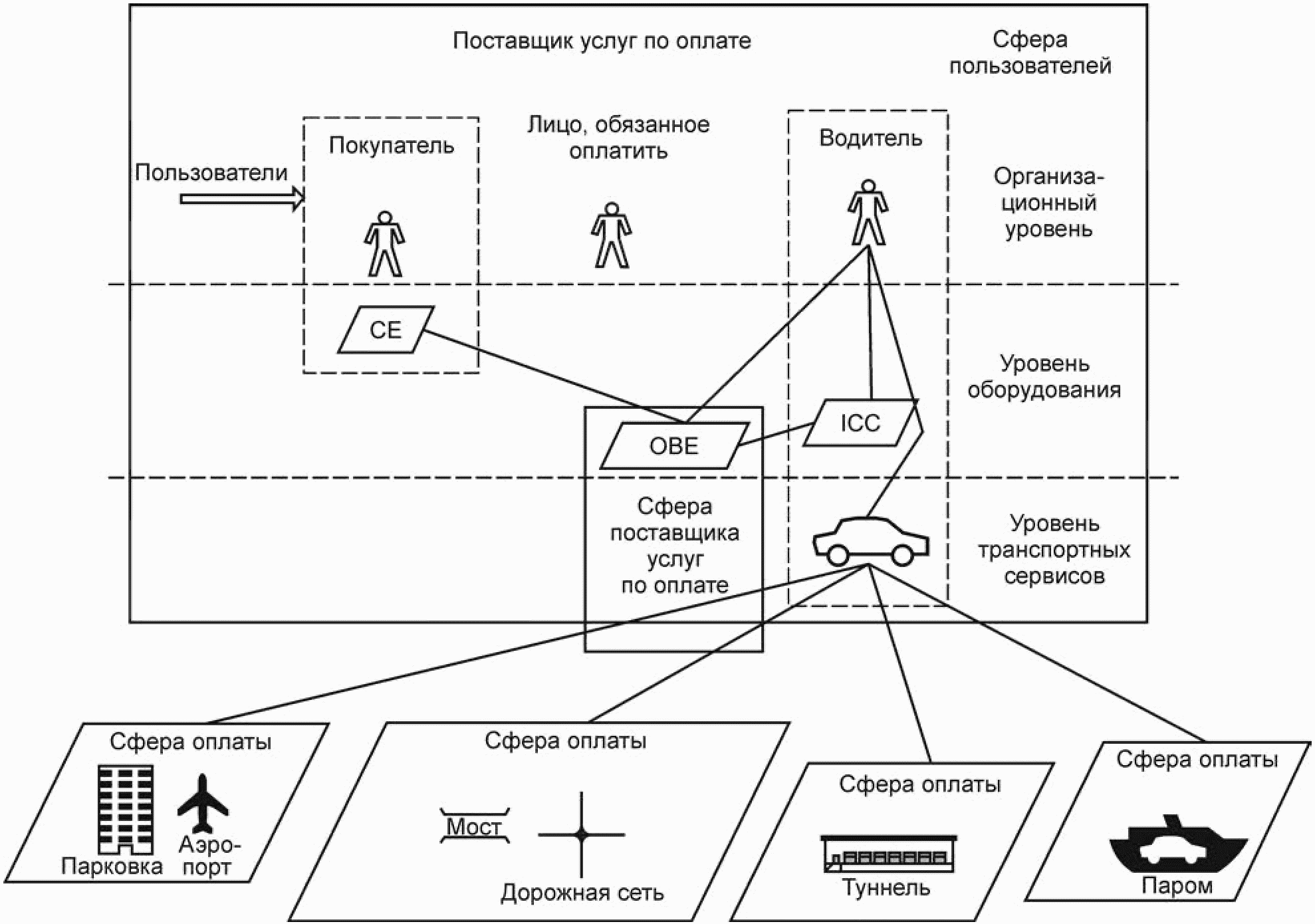 С организационной точки зрения описание архитектуры включает в себя определение стоимости платы за проезд и всех связанных с этим регулятивных мер. Сам процесс взимания платы не приводится.