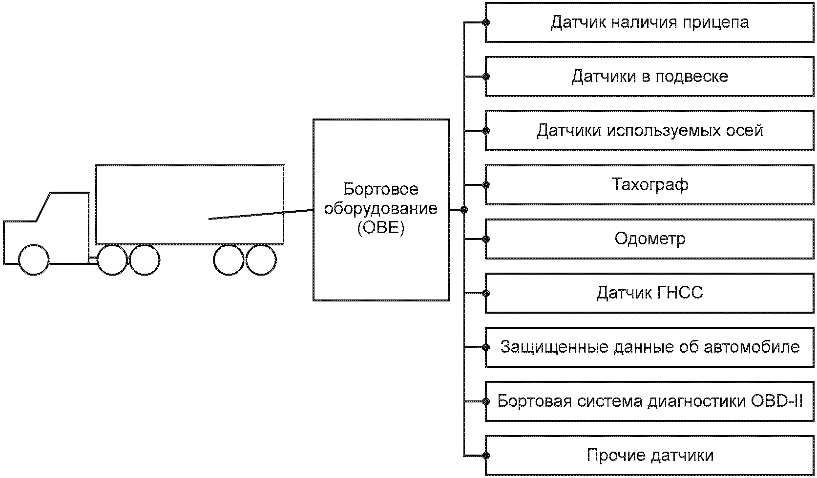 Примечание - Предполагается, что водитель приводит в действие OBE (использует/обслуживает) (например, устанавливает число осей).