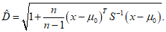 Пример 1 - Пусть имеются три характеристики объекта: x1 - цвет, x2 - масса и x3 - число дефектов. Эти характеристики могут быть объединены в трехмерную величину для оценки процесса. Размерность вектора равна трем, d = 3.