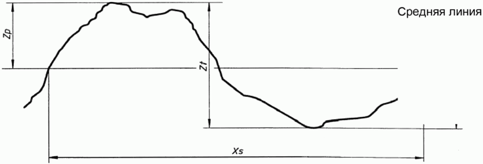 средняя линия для профиля шероховатости (mean line the roughness profile): Линия, которая соответствует длинноволновому компоненту профиля, с подавлением при помощи фильтра профиля