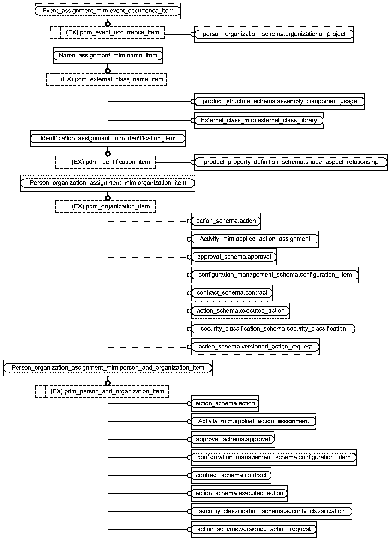 - представление на уровне объектов отображает конструкции на языке EXPRESS, определенные в схеме ПЭМ данного прикладного модуля, и ссылки на импортированные конструкции, которые конкретизированы или на которые имеются ссылки в конструкциях схемы ПЭМ рассматриваемого прикладного модуля.