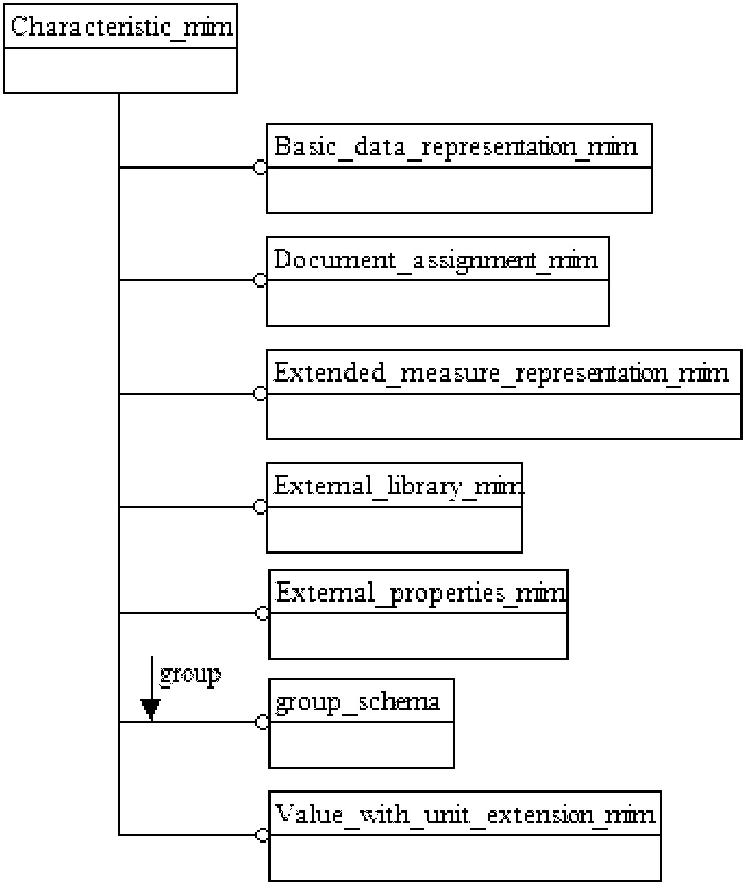 - представление на уровне объектов отображает конструкции на языке EXPRESS, определенные в схеме ИММ данного прикладного модуля, и ссылки на импортированные конструкции, которые конкретизированы или на которые имеются ссылки в конструкциях схемы ИММ рассматриваемого прикладного модуля.