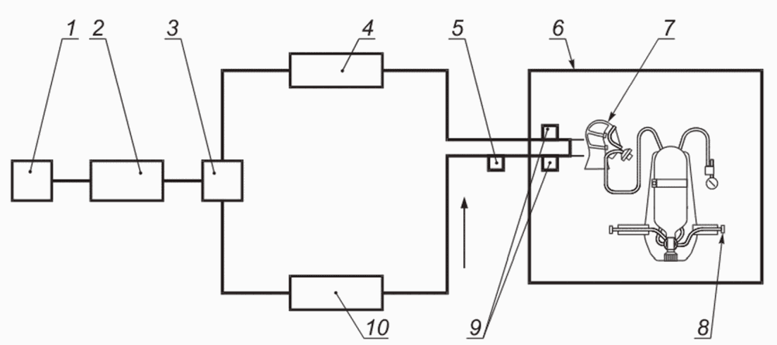 При испытании аппарата на стенде определяют время защитного действия, условия дыхания, параметры основных систем и устройств.