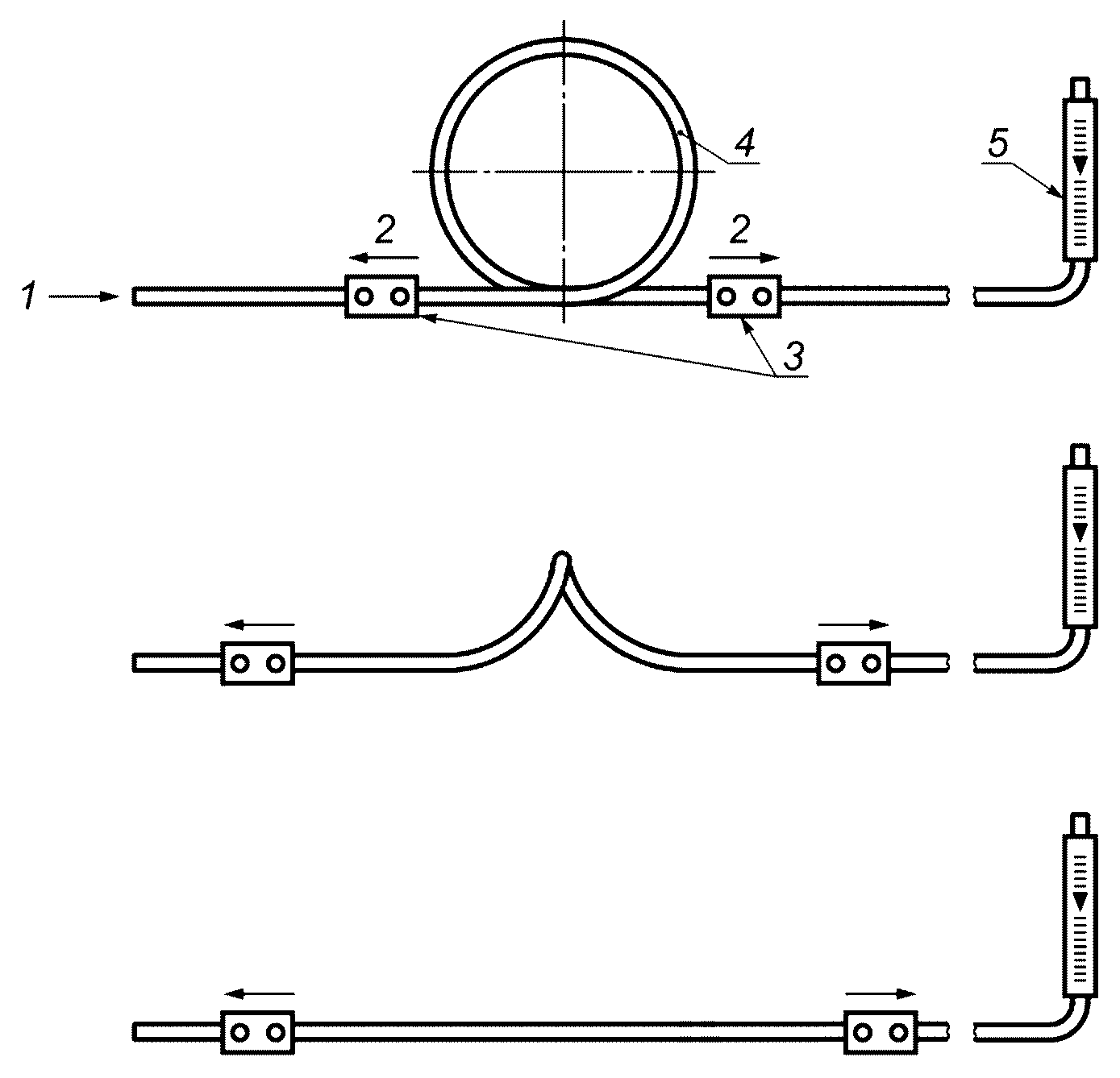 При включении стенда на холостой ход трехходовые краны устанавливают в положение, при котором имитатор дыхания соединяется по воздуховодной системе стенда с окружающей средой. В этом положении испытуемый аппарат отключен от имитатора дыхания. Избыточное давление воздуха под лицевой частью измеряют в подмасочном пространстве лицевой части (полумаске).