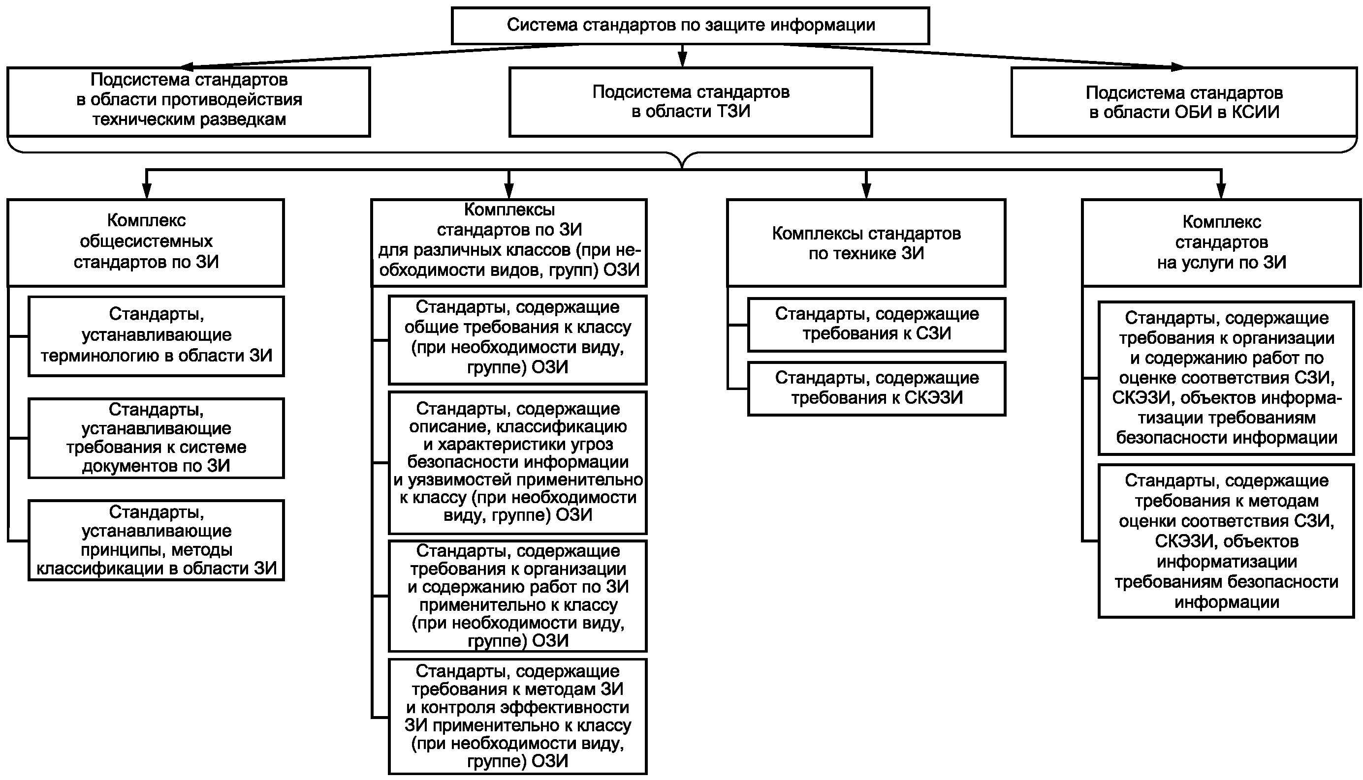 - комплексы стандартов по ЗИ для различных классов (видов, групп) ОЗИ;