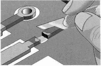 Рисунок 45 d. Приклеивание провода кусочками липкой ленты