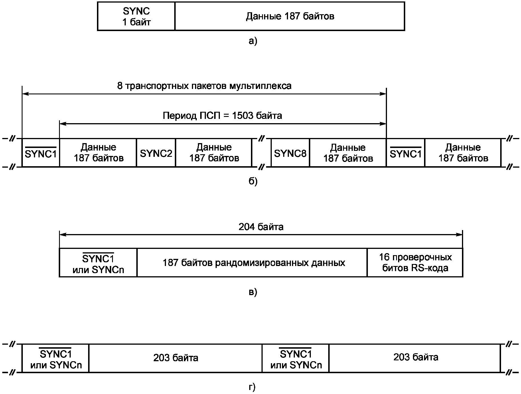 3.1 байт синхронизации (sync-word byte): Последовательность из 8 битов, значение которой в шестнадцатеричном коде равно 0 x 47, служащая для цикловой синхронизации транспортного пакета.