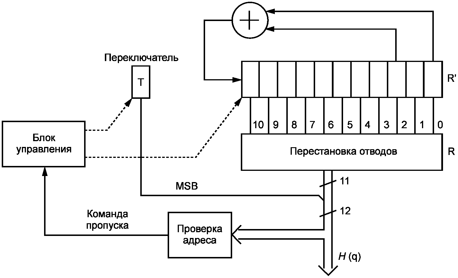 Функциональная схема алгоритма, используемого для генерации адресов в посимвольном перемежителе в режиме 4K, показана на рисунке Д.3.