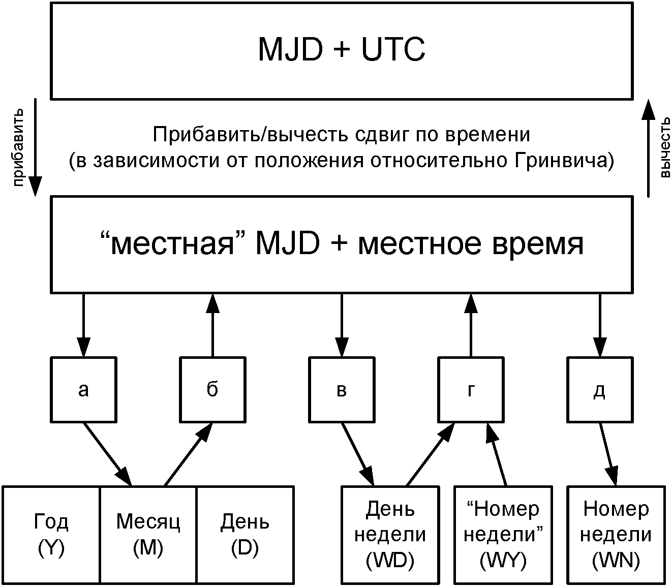 Возможные варианты преобразования времени показаны на рисунке Д.1