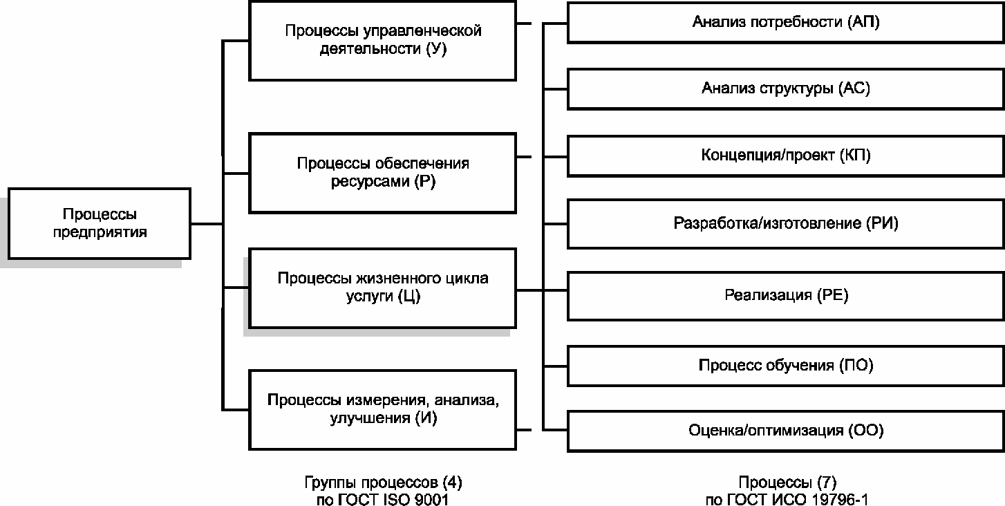 ГОСТ ISO 9001 типовая система менеджмента качества включает в себя четыре группы процессов: