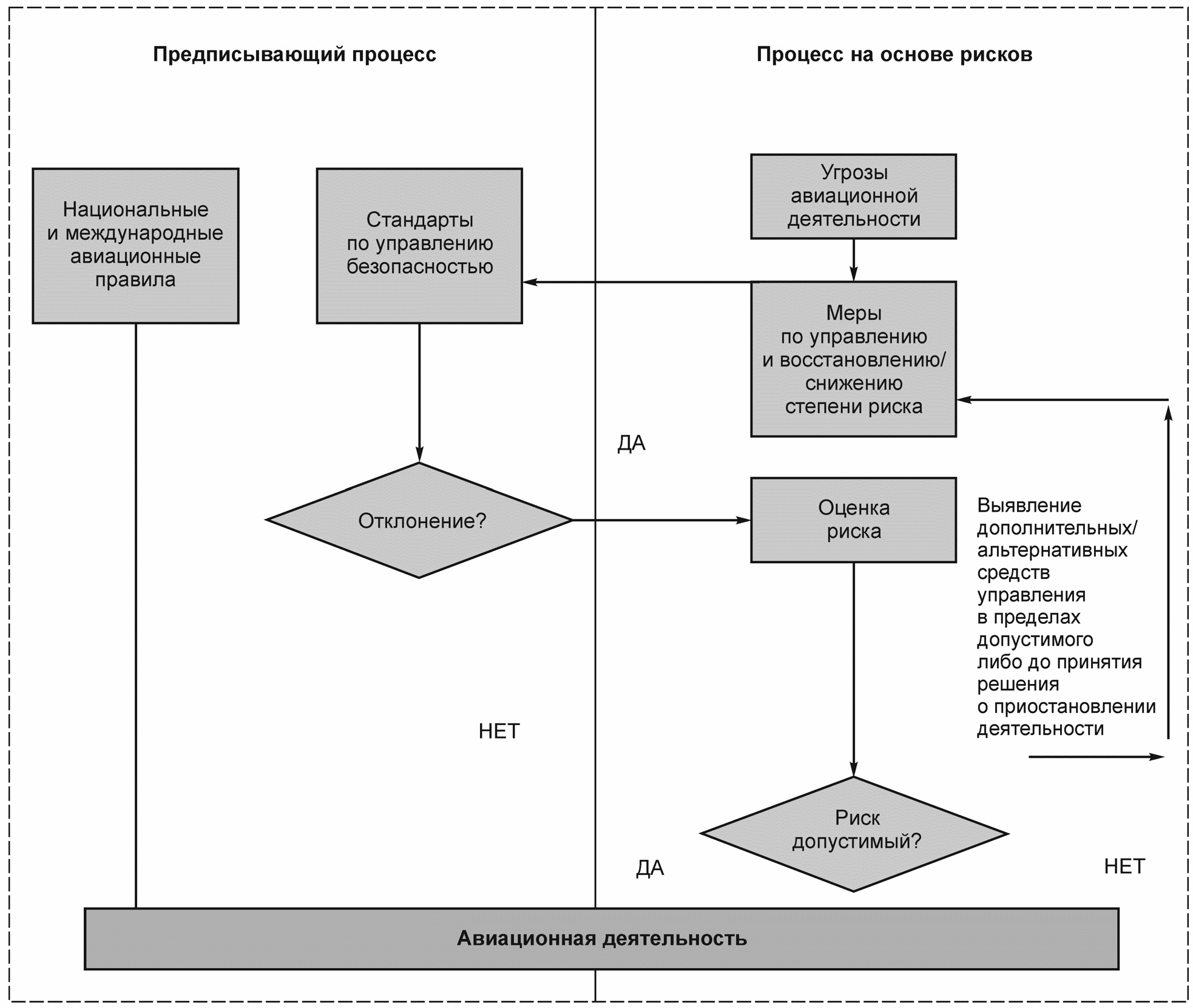 Государство устанавливает средства контроля, определяющие порядок действий поставщиков обслуживания по выявлению источников опасности и управлению рисками для безопасности авиационной деятельности.