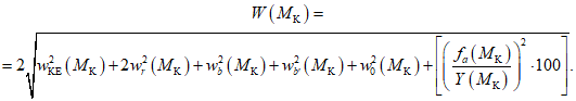Относительную расширенную неопределенность измерений W(MK) при использовании кубической интерполяционной функции рассчитывают по формуле