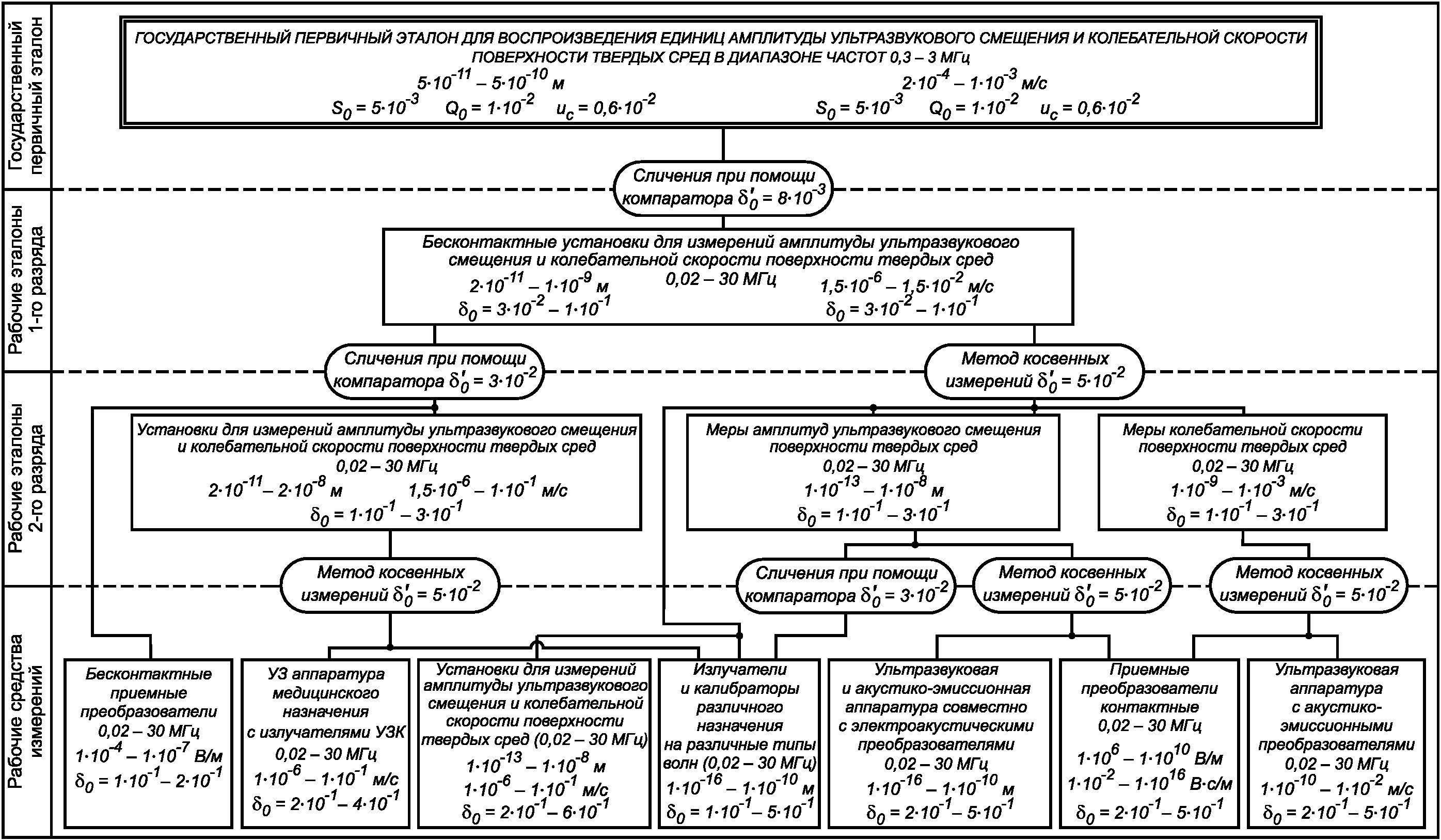 "ГОСТ Р 8.826-2013. Национальный стандарт Российской Федерации. Государственная система обеспечения единства измерений. Государственная поверочная схема для средств измерений амплитуды ультразвукового смещения и колебательной скорости поверхности твердых сред"