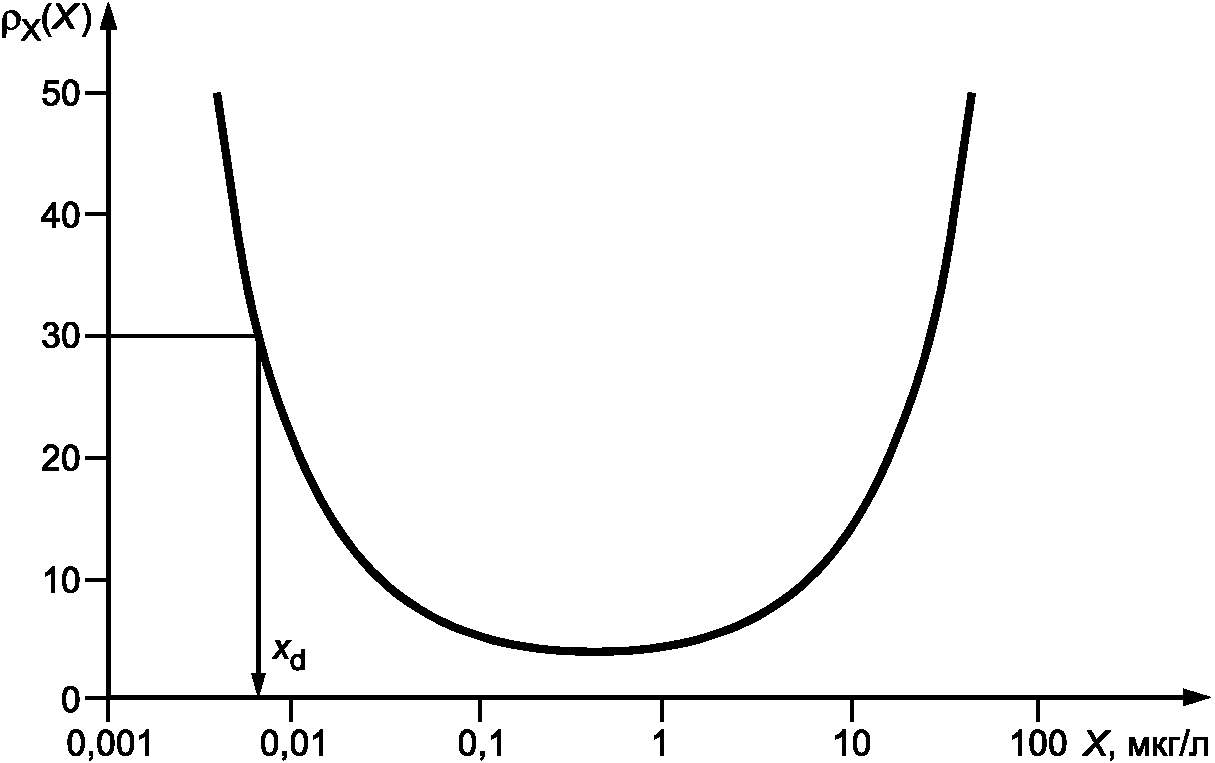 Критическое значение xc и минимальное обнаруживаемое значение xd даны в единицах приведенной переменной состояния. Если xc и xd определены на основе распределения отклика, определение должно включать функцию калибровки, связывающую отклик с приведенной переменной состояния. Настоящий стандарт позволяет определить xc и xd на основе распределения приведенной переменной состояния независимо от вида функции калибровки, а, следовательно, независимо от ее линейности или нелинейности.