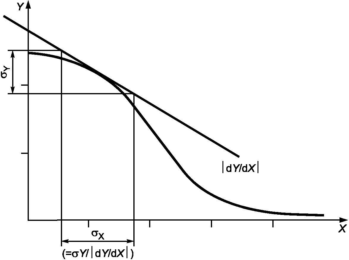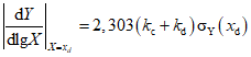 где абсолютное значение производной используют в случае, когда угловой коэффициент отрицателен. Деление на неизвестную переменную xd обеих частей этого уравнения дает уравнение