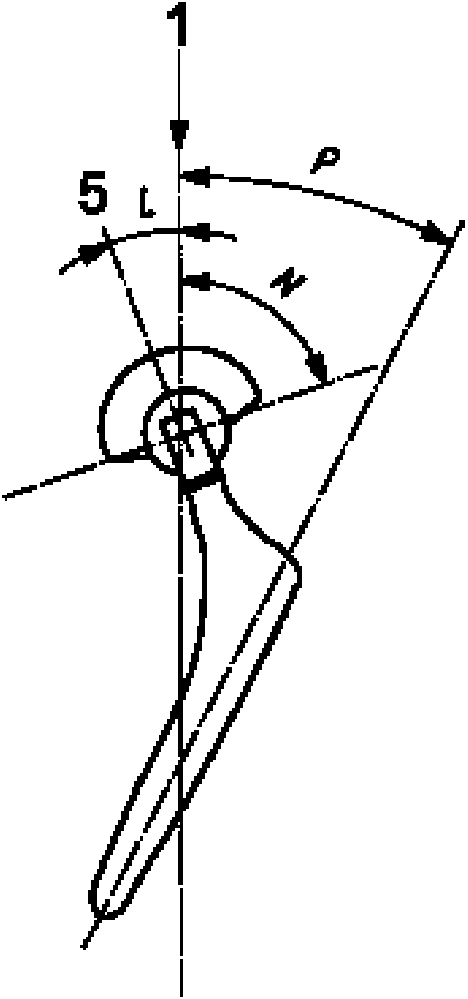 4 - угол ротации внутрь/кнаружи; 5 - полярная ось вертлужного компонента;