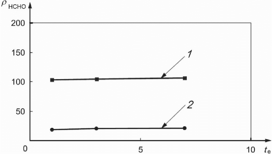 формальдегида, мкг/м3; 1 - массовая концентрация