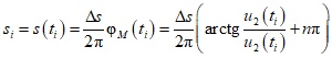 По этим двум квадратурным сигналам вычисляют выборочные значения перемещения по формуле
