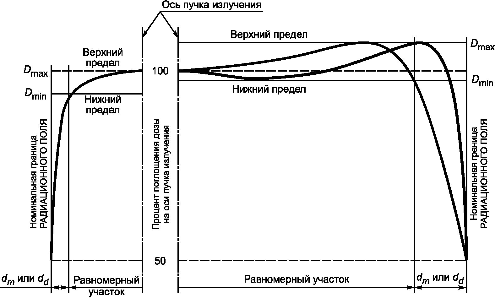 3.14 НОРМАЛЬНОЕ РАССТОЯНИЕ ОБЛУЧЕНИЯ; НРО (NOMINAL TREATMENT DISTANCE): Для ЭЛЕКТРОННОГО ИЗЛУЧЕНИЯ определенное расстояние, измеренное вдоль ОПОРНОЙ ОСИ от окна ЭЛЕКТРОННОГО ПУЧКА до удаленного конца АППЛИКАТОРА ЭЛЕКТРОННОГО ПУЧКА или до определенной плоскости.