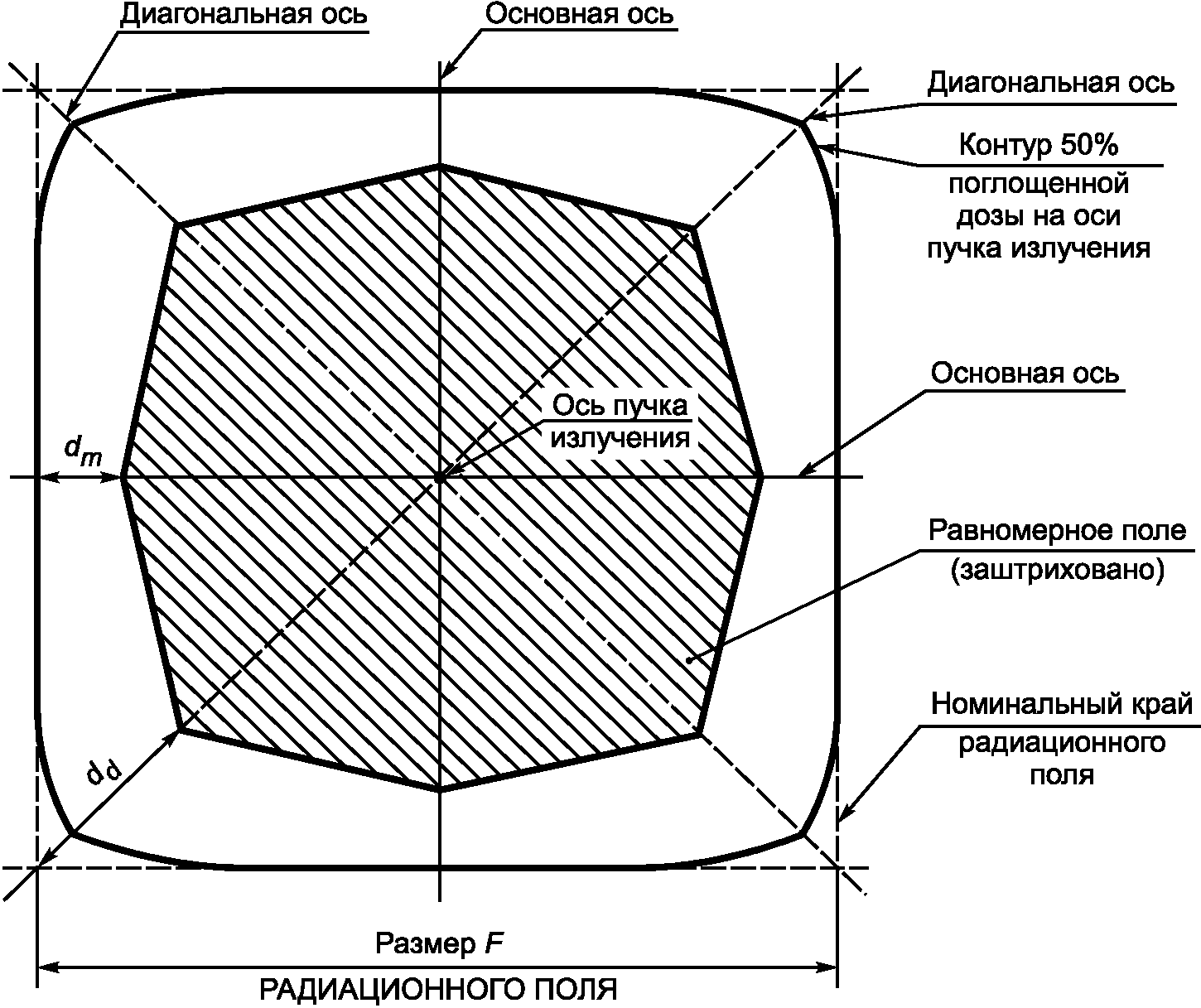 Примечание - Поле имеет ту же форму, что и отверстие УСТРОЙСТВА ФОРМИРОВАНИЯ ПУЧКА. ГЕОМЕТРИЧЕСКИЙ РАЗМЕР может быть определен на любом расстоянии от ВИРТУАЛЬНОГО ИСТОЧНИКА.