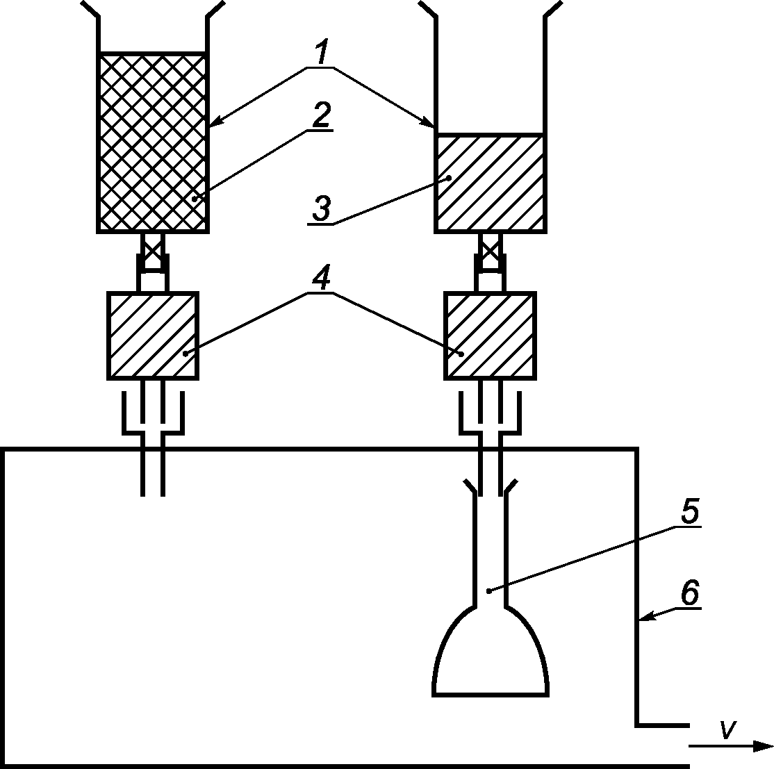5 - мерная колба вместимостью 2 см3; 6 - вакуумная система;