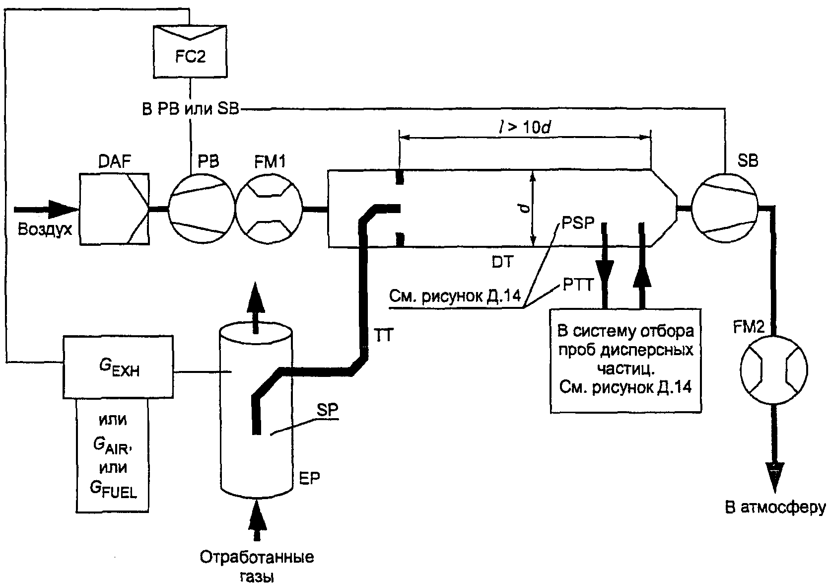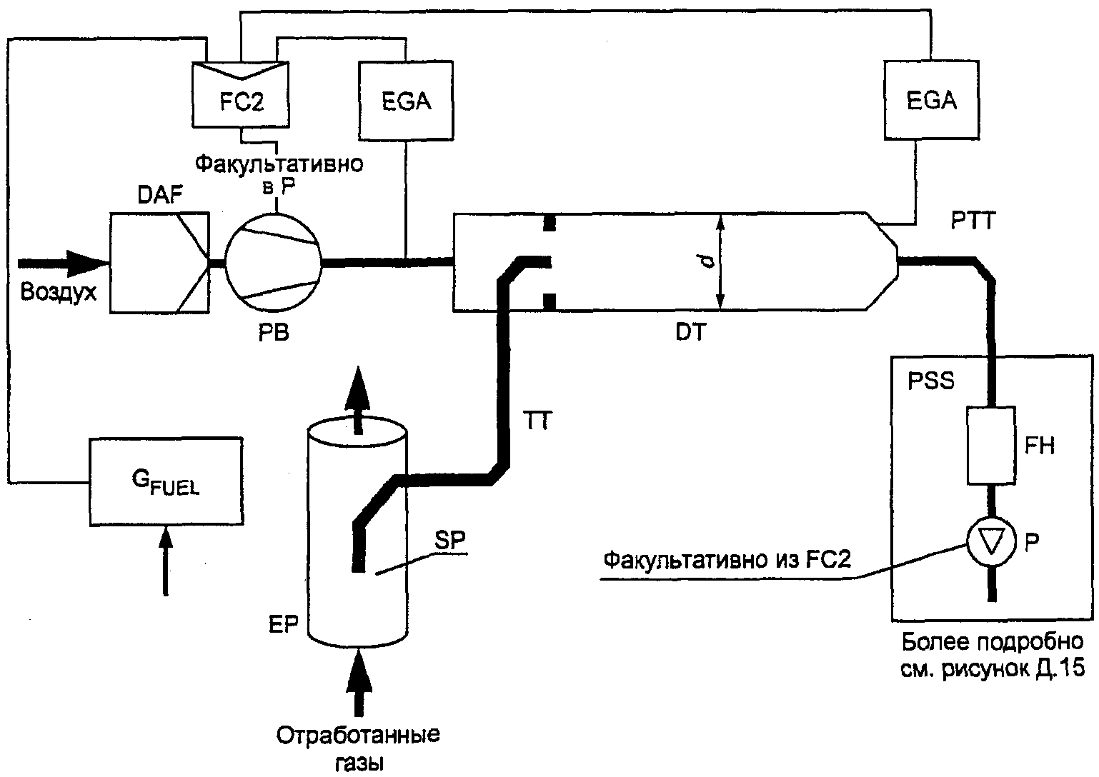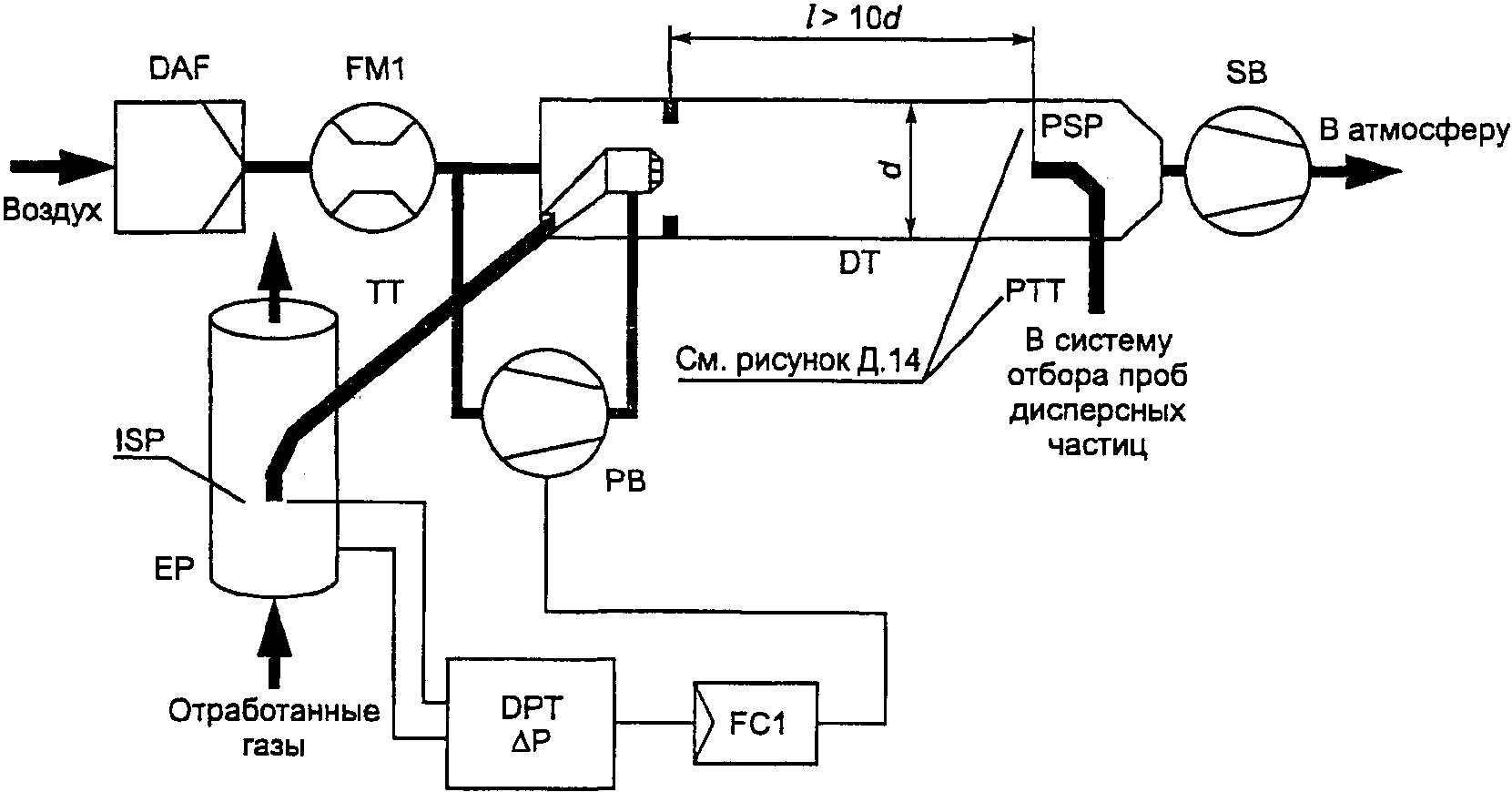 Примечание. Если наружная температура около пробоотборника PSP, патрубка PTT, туннеля SDT и фильтродержателя FH менее 293 К (20 °C), то необходимо предусмотреть соответствующие меры, исключающие осаждение дисперсных частиц на холодных стенках этих устройств. Поэтому рекомендуют их подогрев и/или изоляцию в пределах, устанавливаемых соответствующими предписаниями, а также поддержание температуры на поверхности фильтра в процессе осаждения пробы не менее 293 К (20 °C).