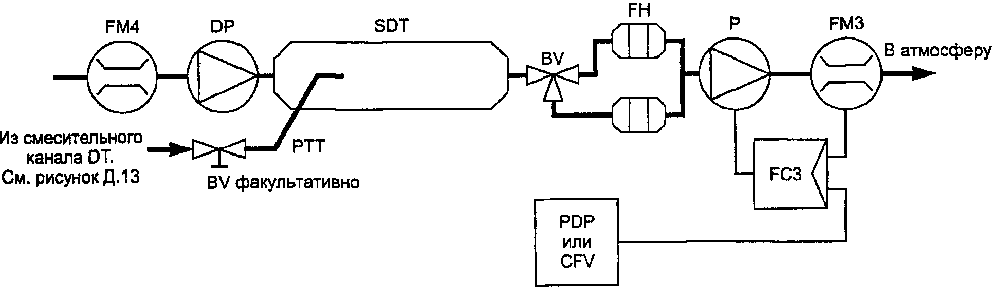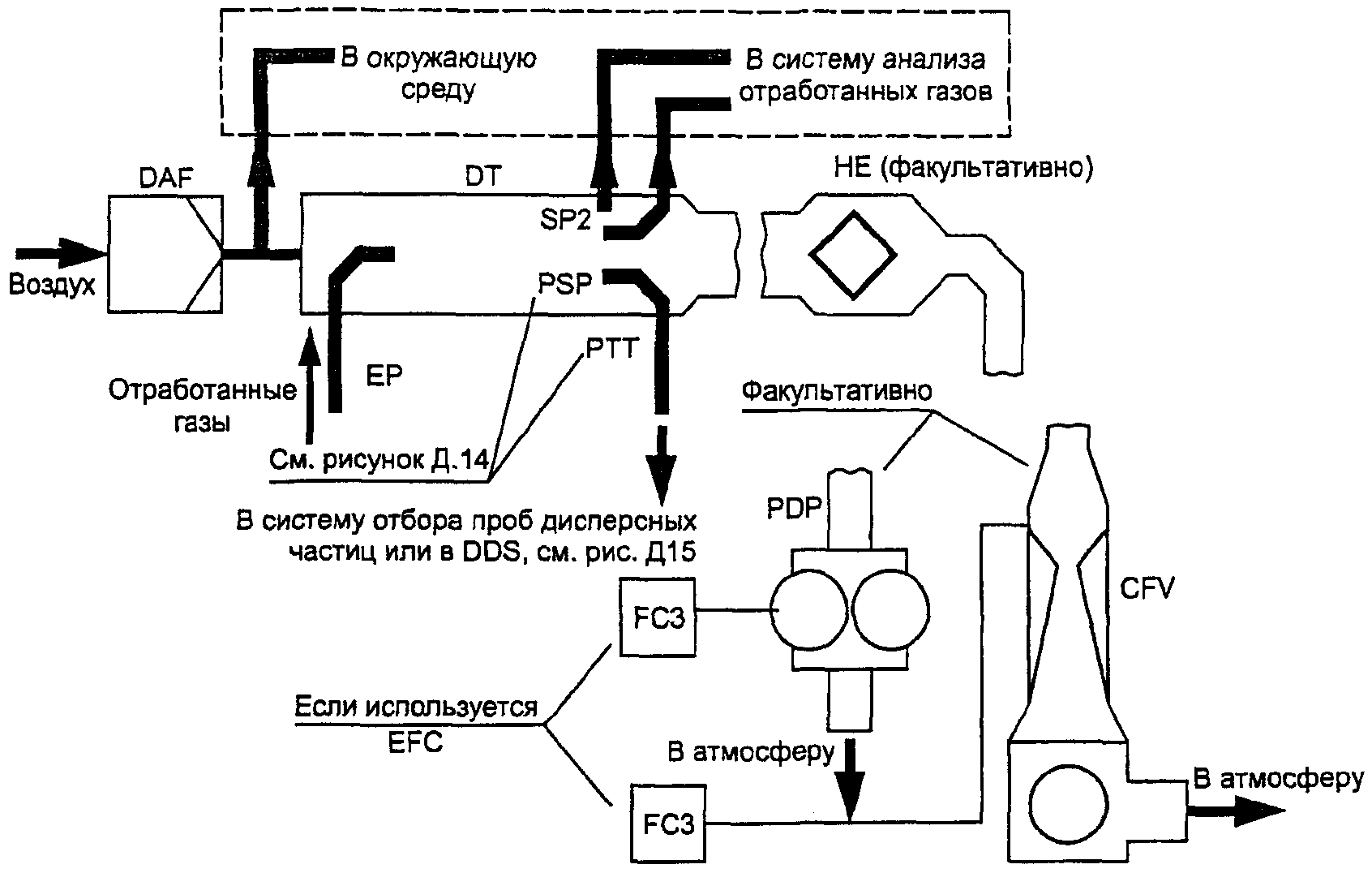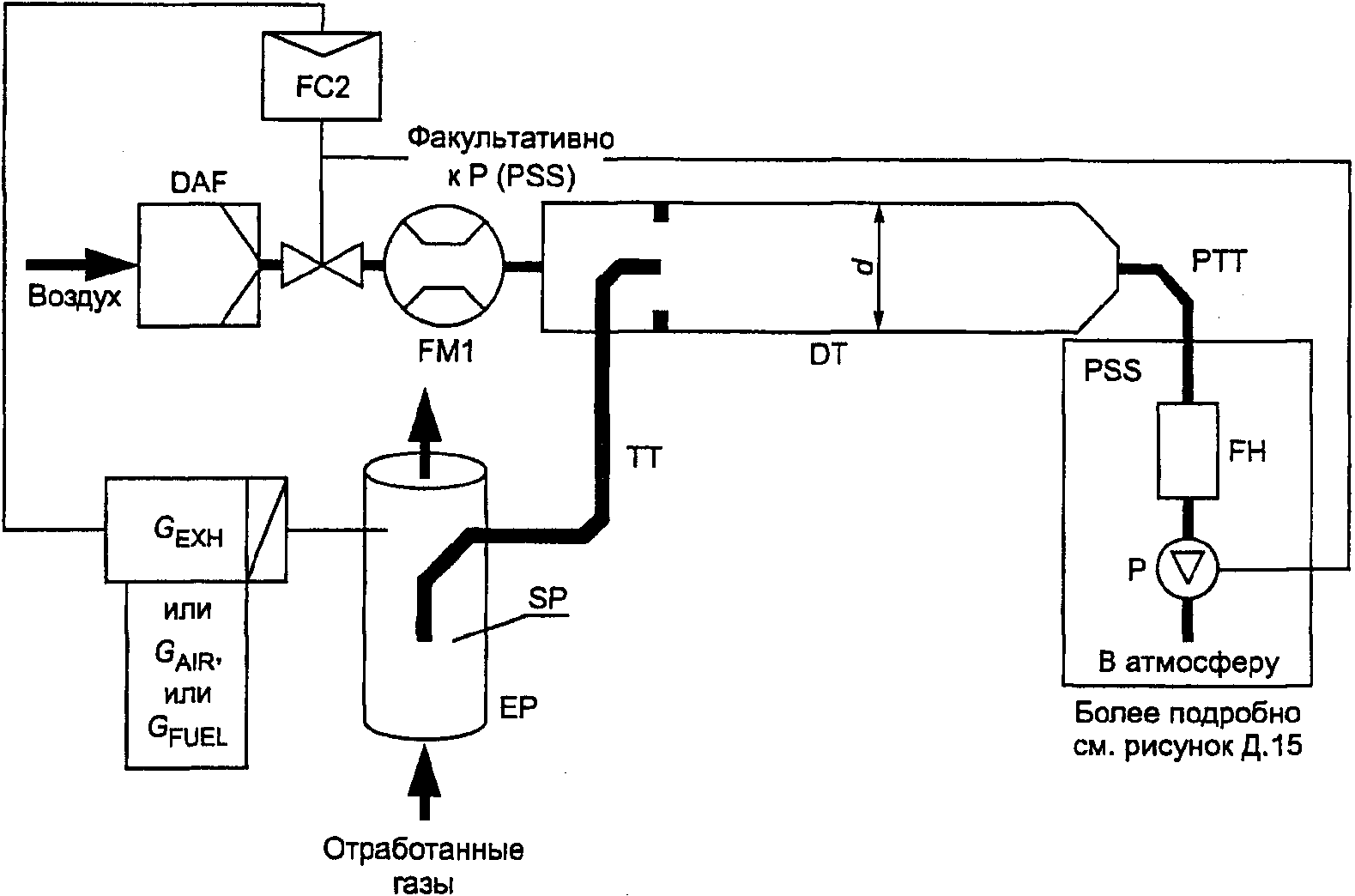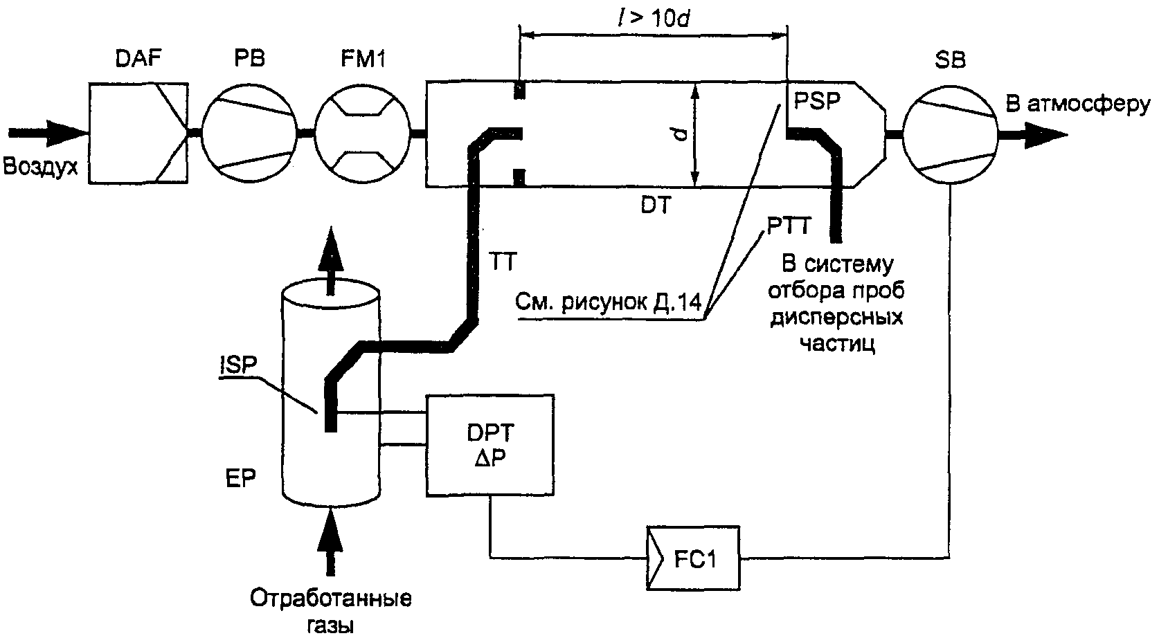 Примечание. Если наружная температура около пробоотборника PSP, патрубка PTT, туннеля SDT и фильтродержателя FH менее 293 К (20 °C), то необходимо предусмотреть соответствующие меры, исключающие осаждение дисперсных частиц на холодных стенках этих устройств. Поэтому рекомендуют их подогрев и/или изоляцию в пределах, устанавливаемых соответствующими предписаниями, а также поддержание температуры на поверхности фильтра в процессе осаждения пробы не менее 293 К (20 °C).
