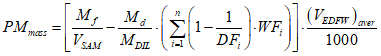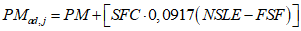 где  - скорректированное значение PM, г/(кВт·ч); PM - измеренное взвешенное значение конкретных выбросов вредных частиц, г/(кВт·ч); SFC - взвешенное значение конкретного потребления топлива, г/(кВт·ч); NSLF - среднее номинальное содержание серы 0,15 % (массовая доля); FSF - содержание серы в топливе, % (массовая доля). |