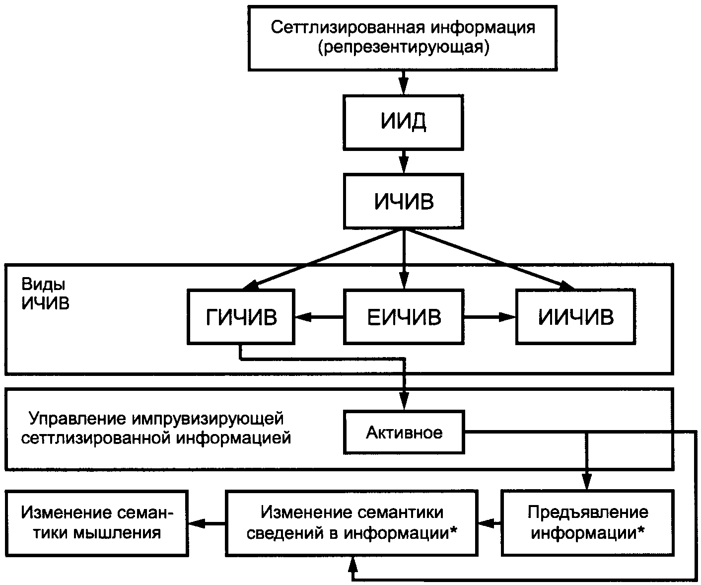 3.1. активно управляемая импрувизирующая информация: Управляемая машинным способом сеттлизированная информация с некорректируемым изменением, образуемая с использованием ноон-моделирования, моделинг-ноонинга для интенсификации деятельности мышления оператора.
