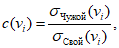 3.10 показатель уникальности биометрического параметра: Характеристика i-го биометрического параметра, отражающая отличие контролируемого параметра от среднестатистического значения этого параметра, характерного для всех пользователей, вычисляемая по формуле где EЧужой(vi) - математическое ожидание i-го биометрического параметра множества биометрических образов "Чужой"; EСвой(vi) - математическое ожидание i-го биометрического параметра множества биометрических образов "Свой". |