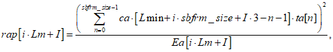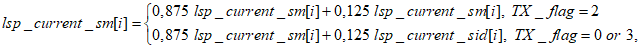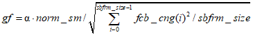 где M является числом подфреймов за 80 мс. Кроме того xnorm_av_end является xnorm_av[n_subframe-1], где n_subframe - это число подфреймов во фрейме.