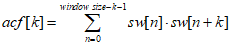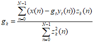где h - вектор импульсной передаточной функции фильтра FIR с частотой среза 1 кГц. R[0] - первый коэффициент автокорреляции и R - матрица автокорреляции Toeplitz (Теплица) с коэффициентами автокорреляции в каждой диагонали. Эти параметры подсчитываются каждые 10 мс. Их средние значения обновляются следующим образом: