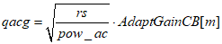Среднее RMS входного сигнала xnorm_av[] вычисляется из неквантованного RMS xnorm[] следующим образом: