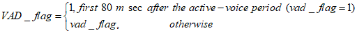 Когда период речевой активности (vad_flag=1) короче, чем 80 мс, VAD_flag всегда равен vad_flag.