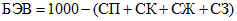 БЭВ - содержание безазотистых экстрактивных веществ, г в 1 кг сухого вещества вычисляют по формуле