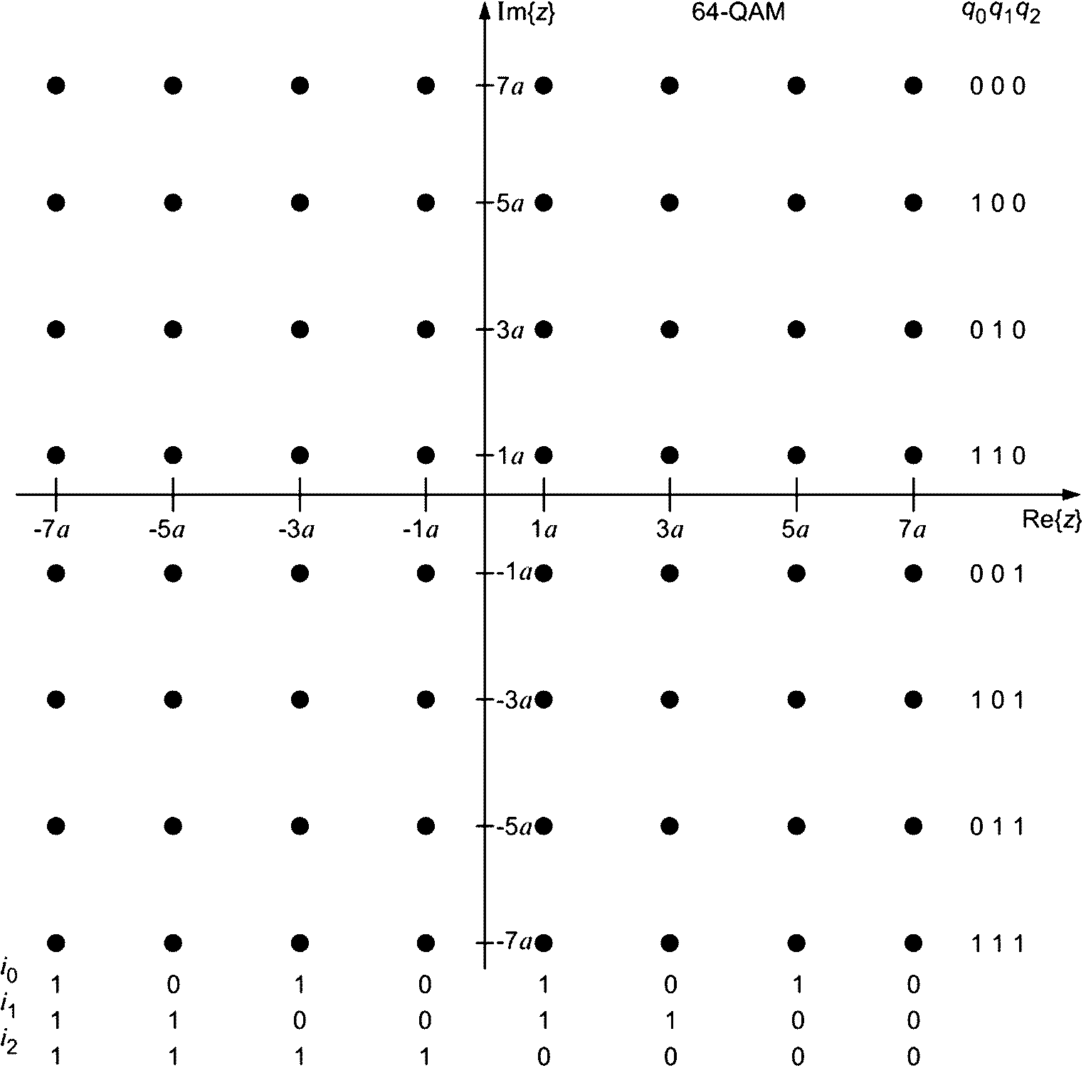 z согласно алфавиту модуляции, используемому для MSC (64-QAM или 16-QAM для режимов устойчивости A, B, C, D, см.