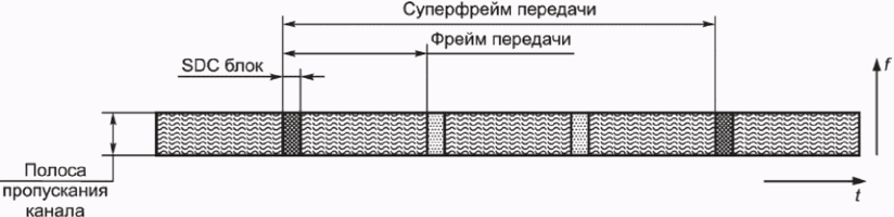2.1.14 суперфрейм передачи (transmission super frame): Ряд последовательных фреймов передачи, причем первые символы OFDM содержат блок SDC.