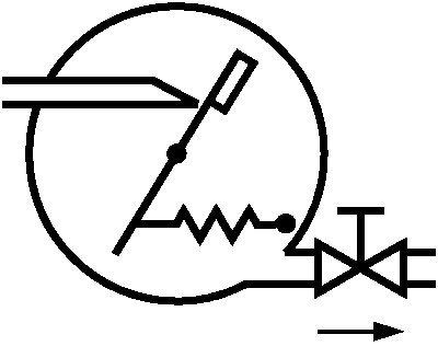 лопастной затвор, соединенный с пружиной обратного действия, расположенной на выходе калиброванного отверстия подачи газа; напор газа толкает лопасть и устанавливает в положение, являющееся функцией показателя расхода | | |