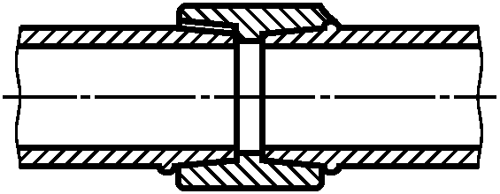 4. Сдавленное сечение трубы ![]() | Вставлена слишком далеко во время нагрева или сварки, что вызвано, например: - избыточным сварочным усилием; - сваркой тонкостенных труб; - избыточным временем нагрева; - повышенной температурой сварки | " |