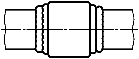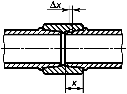 2.4. Не полностью вставленная труба ![]() | Концы смещены в муфте либо не касаются друг друга, либо остановлены с одной или обеих сторон, например, из-за: - недостаточного продвижения трубы; - срезания концов труб под углом | То же |