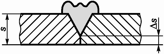 9. Смещение соединяемых поверхностей ![]() | Нескомпенсированная разность толщин стенок или смещение равных по толщине стенок | Допускается, если , ,но макс 2 мм |